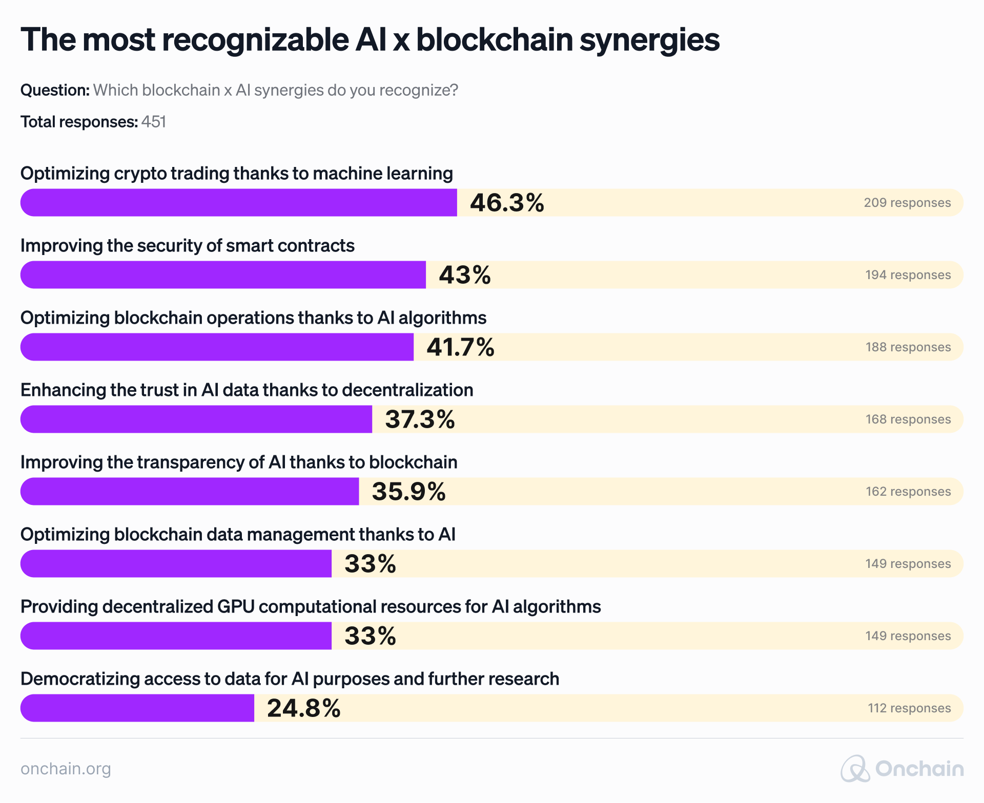 The data collected from the survey respondents (including people familiar with AI, blockchain, or both) further confirmed this assessment. This convergence’s transformative potential became apparent in real-world challenges and its ability to improve businesses.