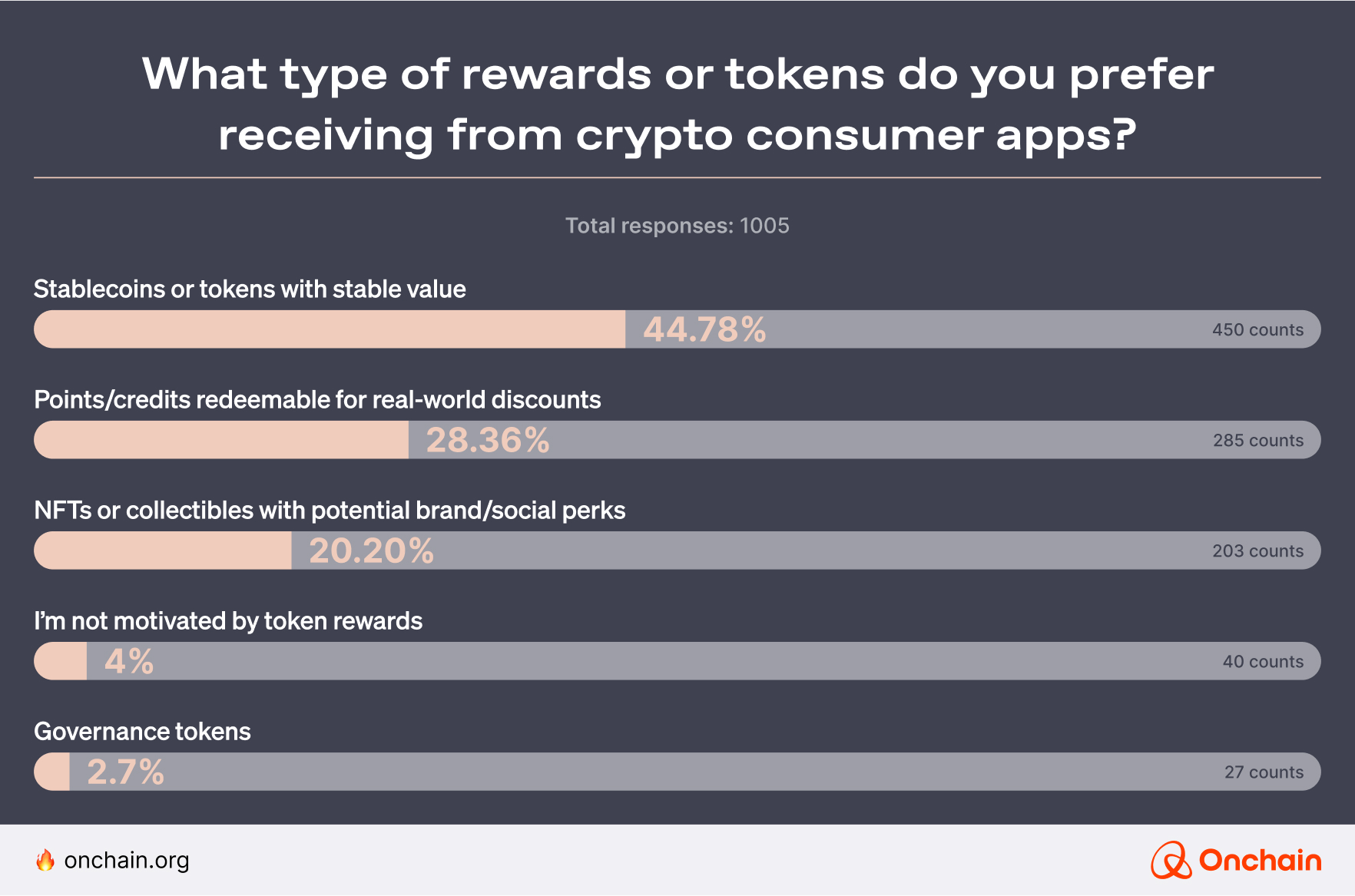 Current problem: Many Web3 consumer applications mistakenly rely on speculative token incentives — such as governance tokens, staking yields, and NFTs — to attract and retain users. While these crypto-native rewards might initially create excitement, our research consistently establishes that mainstream users prioritize tangible, practical value over speculative opportunities.