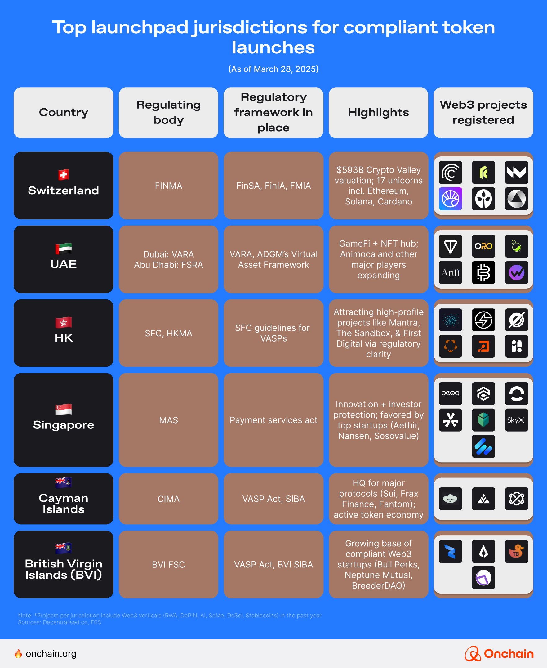 Several jurisdictions, including Switzerland, Liechtenstein, the United Arab Emirates, the Cayman Islands, Hong Kong (HK), Singapore, and the British Virgin Islands (BVI), have special VASP (Virtual Asset Service Provider) regimes in which Web3 projects can issue tokens with relative regulatory clarity.