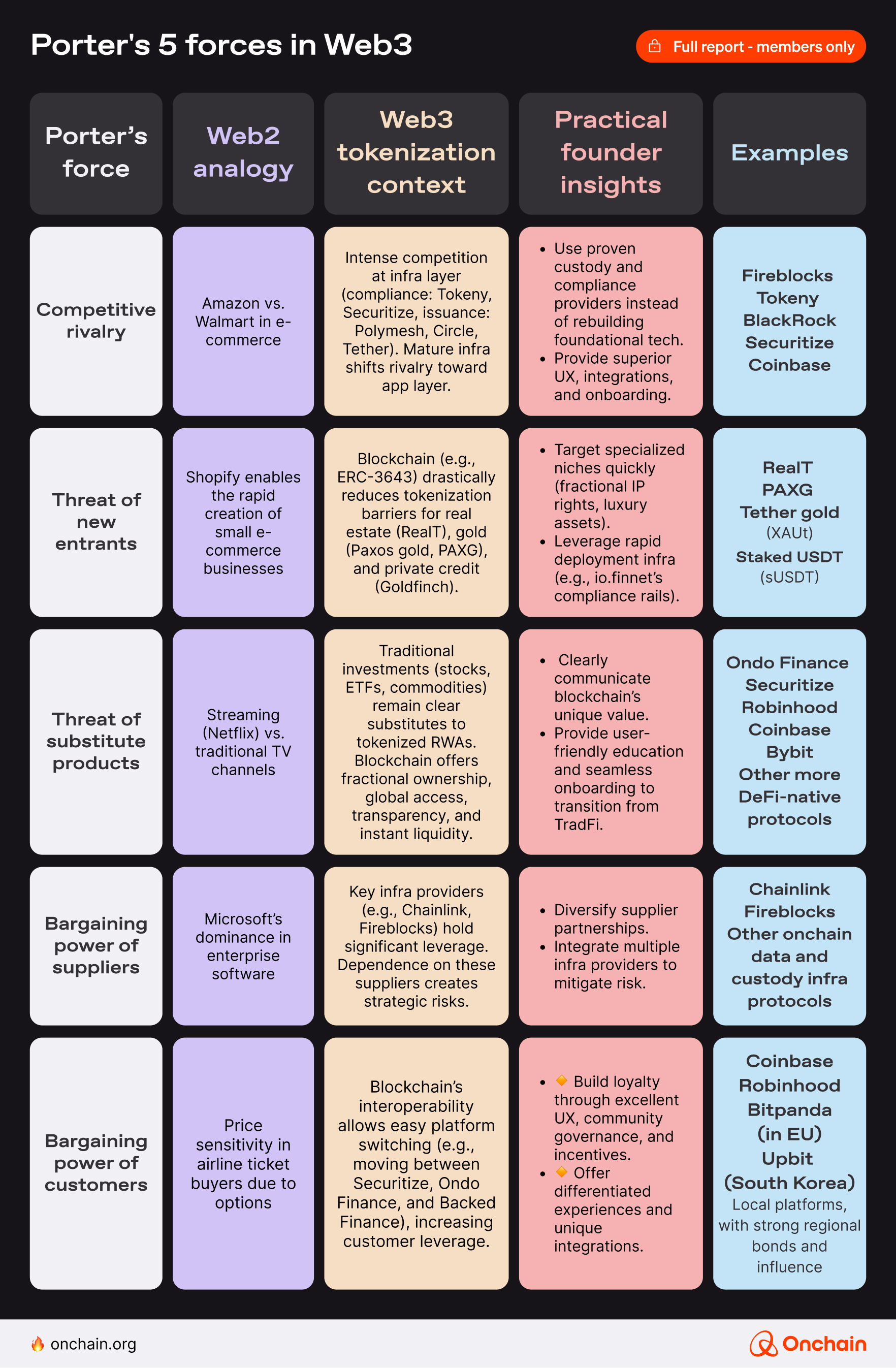Michael Porter’s Five Forces model was first introduced in 1979. The framework is used to explain industry competitiveness and the strategic pressures it faces. While some might question its relevance to the novel concept of Web3 tokenization, its fundamental principles remain insightful.
