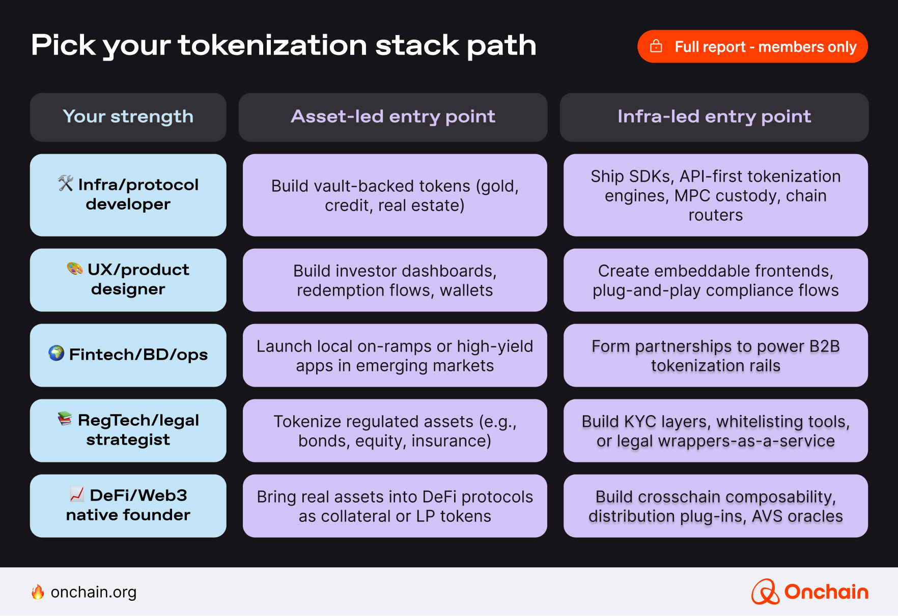 Whichever way you decide to turn, the previous report provided you with a rough map of what to expect. But you also understand that the name of the game is no longer digitizing traditional assets only. It’s about creating infrastructure (infra) and intuitive applications that unlock the true potential of tokenized assets at scale.